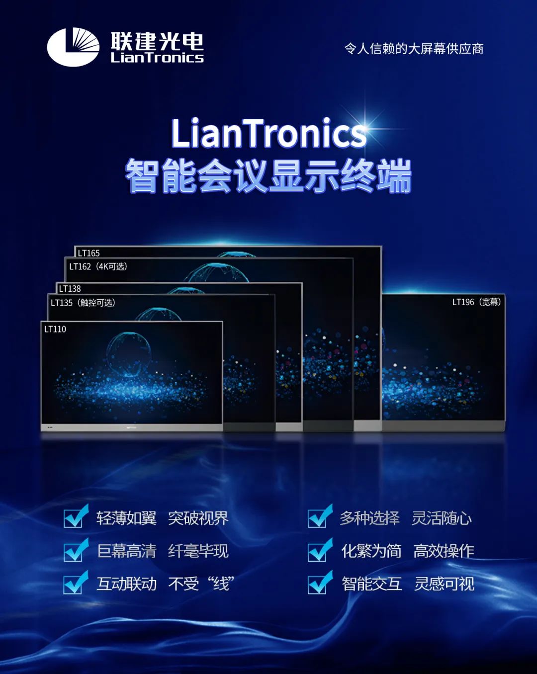 联建光电智能会议显示终端已点亮海内外多个地区,正呈加速态势。未来,联建光电智能会议显示终端将继续以用户体验为中心,赋能千行百业。